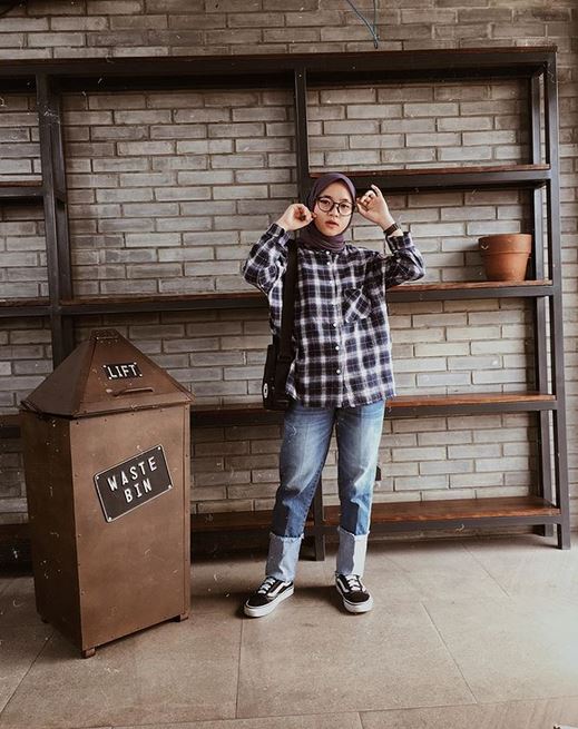 • Nissa sabyan jalani pemotretan mengenakan kemeja kotak-kotak