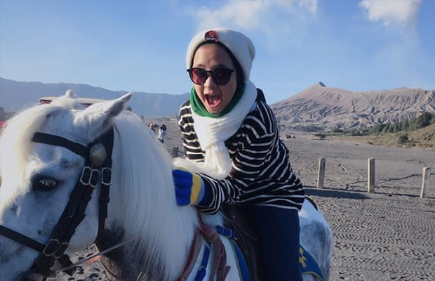 • Nissa menunggangi kuda ketika liburan ke Gunung Bromo
